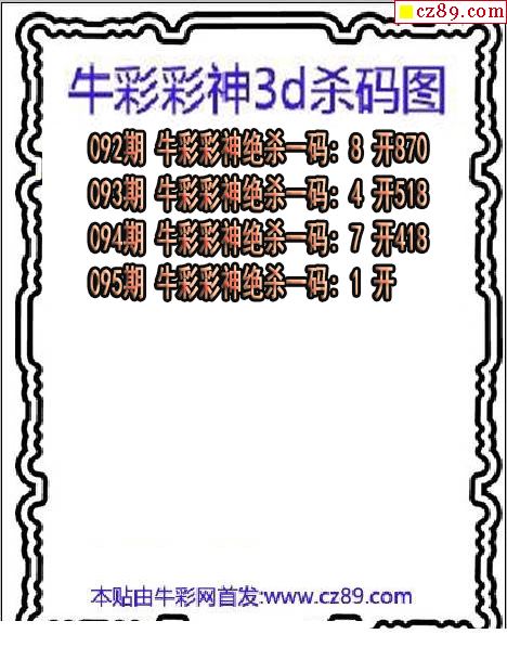 > 牛彩彩神杀码2026095期3d图谜(原创)