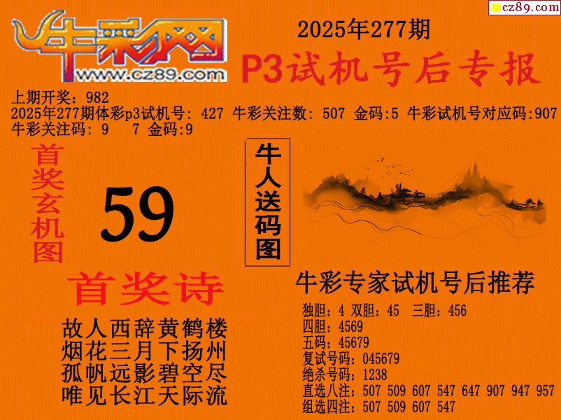 2025277期p3试机号后牛彩网专报