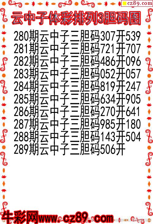 25年289期云中子体彩排列3胆码图